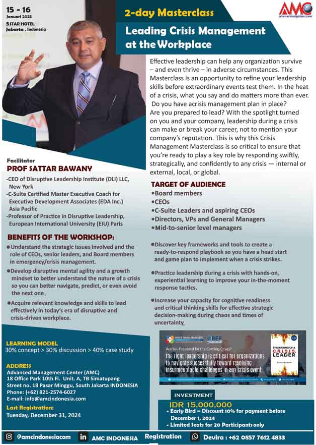 • Early Bird – Discount 10% for payment before December 1, 2024