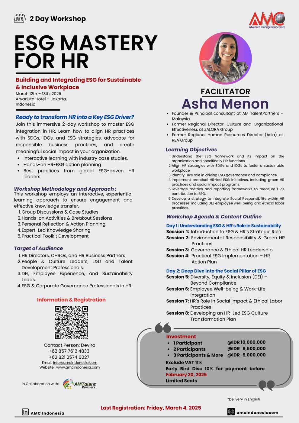 • Early Bird – Discount 10% for payment before February 20, 2025